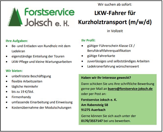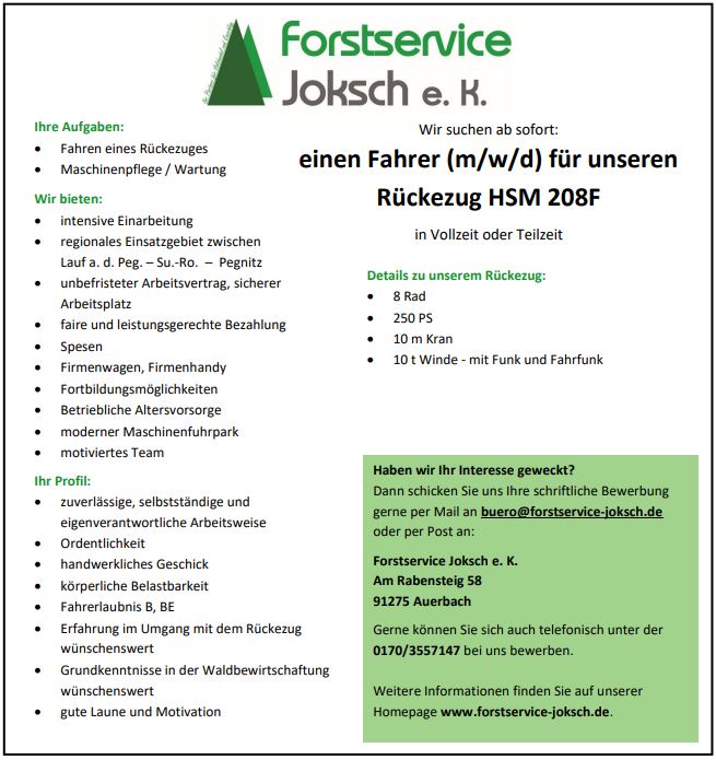 Forstservice Joksch e. K. Christian Joksch Am Rabensteig 58 91275 Auerbach